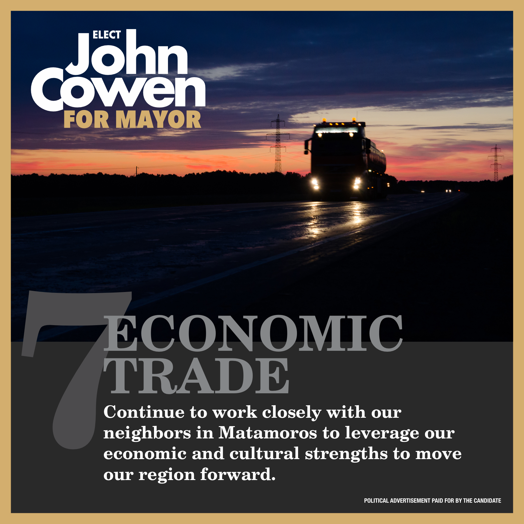 After consulting with my family and friends, I feel that I am ready to step up to the plate and continue the legacy of civic engagement. If elected Mayor, I am prepared to work hard for our community to direct its development and advancement and create a thriving city for present and future generations. I am a proud graduate of the University of Notre Dame with a degree in Finance with honors. Prior to moving back to Brownsville in 2007, I was a senior consultant for a Big 4 professional services firm where I assisted multinational corporations with cross-border tax issues around the world. As president of the Cowen Grows aup since 2007, I oversee day-to-day operations, strategic planning, and growth initiatives of the organization which facilitates international commerce with Mexico and other countries and provides well-paying jobs to local workers. I manage a complex family business and deal with issues of commerce and trade, I feel amply qualified to guide us to improve our city’s economy.